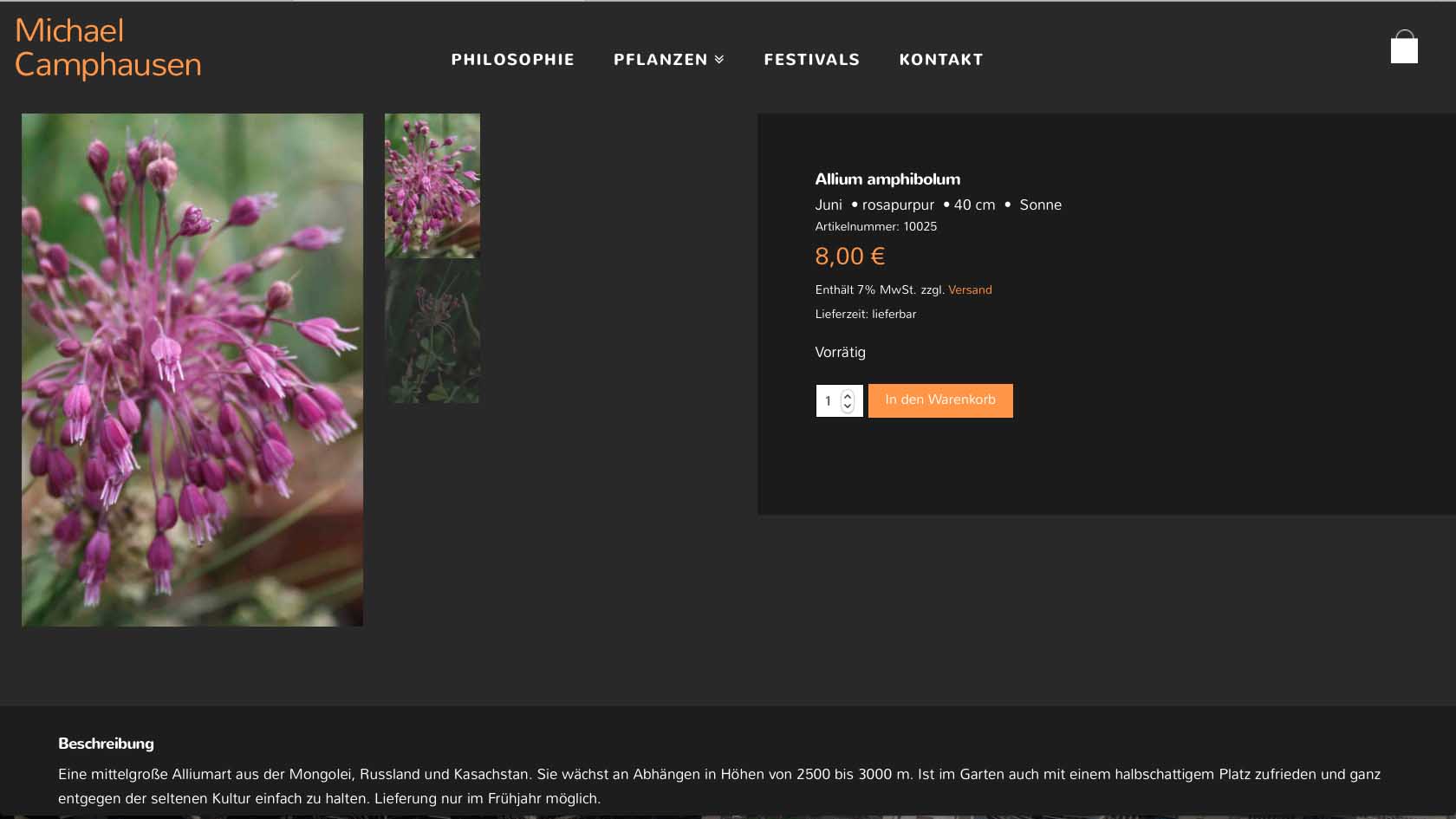 What was going to be a short project turned into a 9-month project. Starting off with an informational website that gave simple lists of the plants he was selling, we took a huge step to get to michaelcamphausen.de 2.0.